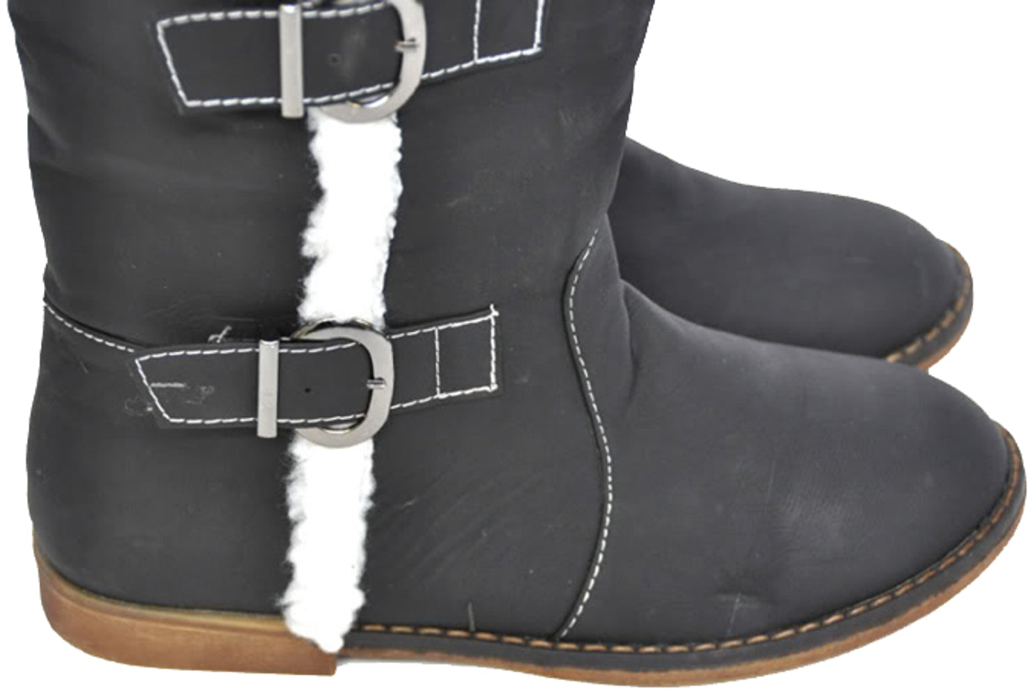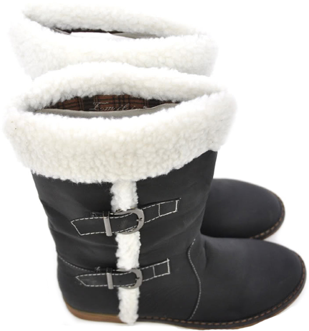 Warme Winterstiefel / BIKER BOOTS mit Fake Fur Krempe