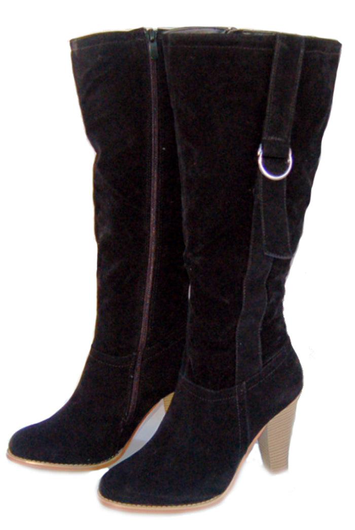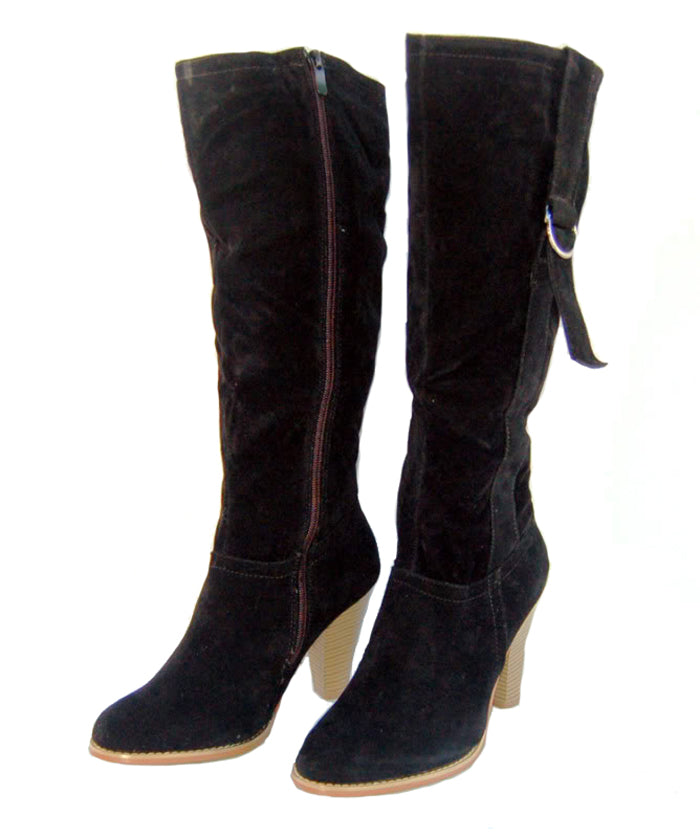 Edle Velours High Heel Stiefel mit Schnalle - schwarz